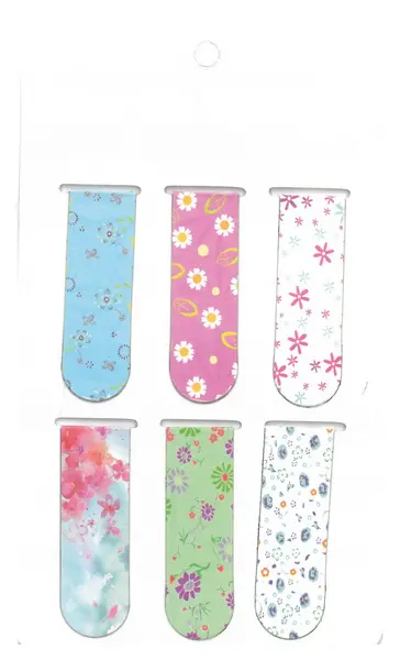 magnetická záložka na označení stránky v knize, 6 ks, velikost archu 18,2 x 10,3 cm