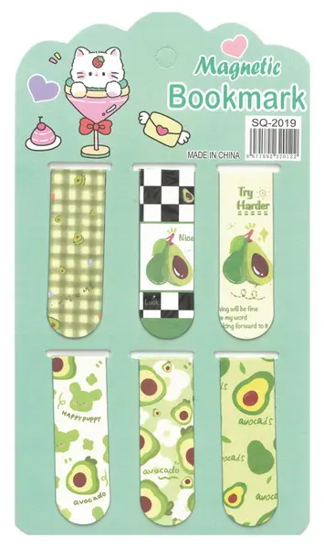 magnetická záložka na označení stránky v knize, 6 ks, velikost archu 18,2 x 10,3 cm