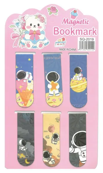 magnetická záložka na označení stránky v knize, 6 ks, velikost archu 18,2 x 10,3 cm