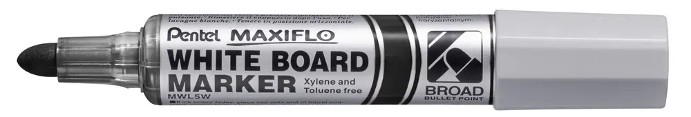 stíratelný • na whiteboardové tabule • kulatý vláknový hrot • tekutý inkoust • možnost dopumpování inkoustu do hrotu • ventilační uzávěr • šíře stopy: 8 mm • barva: černá