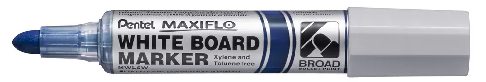 stíratelný • na whiteboardové tabule • kulatý vláknový hrot • tekutý inkoust • možnost dopumpování inkoustu do hrotu • ventilační uzávěr • šíře stopy: 8 mm • barva: modrá
