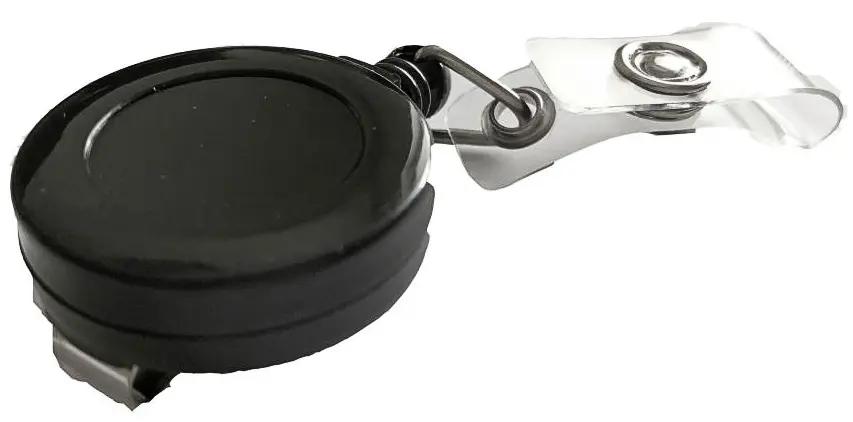 plastový naviják na visačky s klipem • kovová spona pro zachycení navijáku na oděv • délka lanka 65 cm • 10 ks v balení